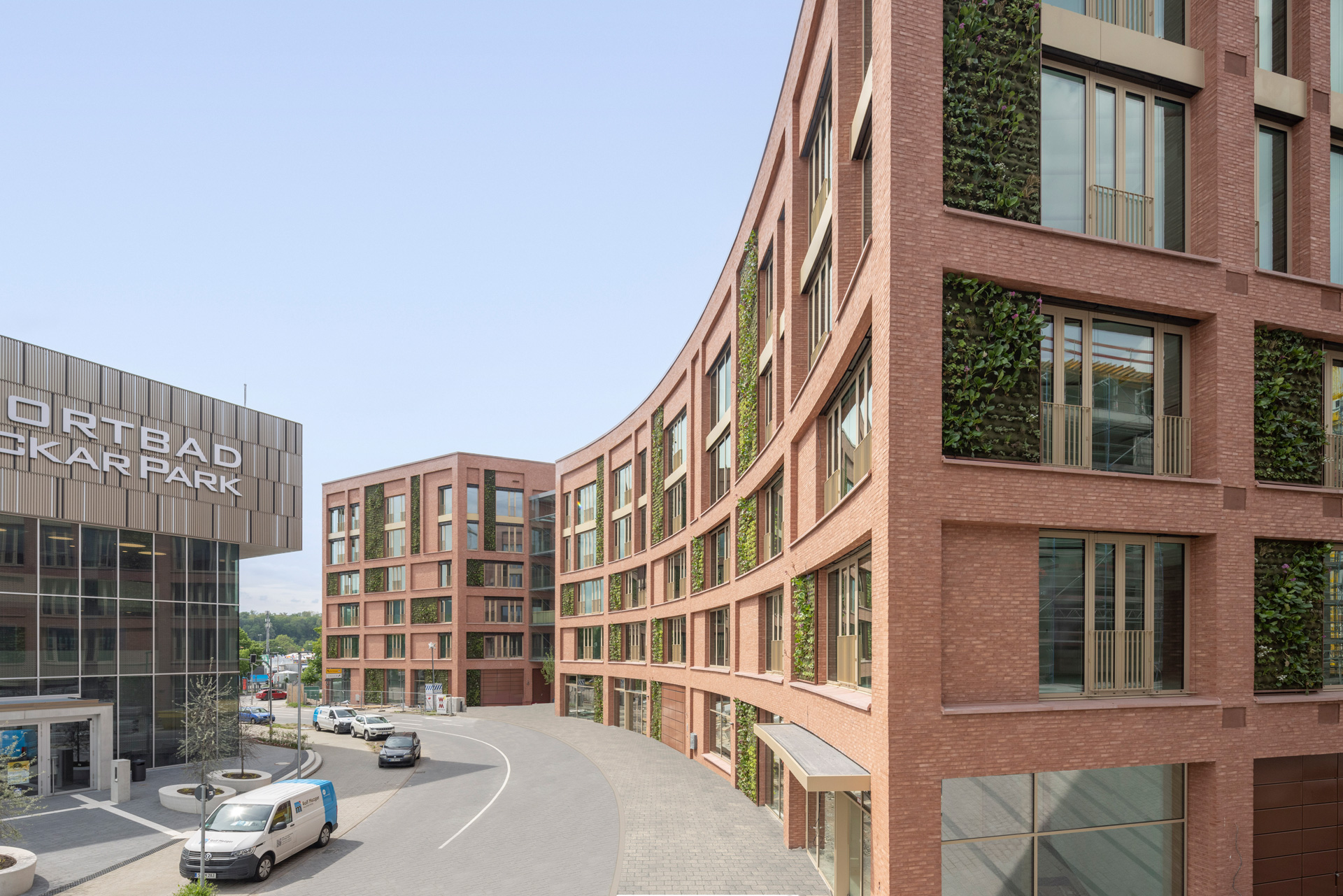 Neben den bereits bestehenden DIBAG Quartieren Q1, Q4 und Q7 wird aktuell das direkt an der neuen „Grünen Mitte“ des NeckarParks gelegene Quartier Q8 fertiggestellt. Eine attraktive Passage teilt es in zwei Gebäudeteile, Q8.1 und Q8.2. Diese sind durch gläserne Verbindungsbrücken in den Obergeschossen miteinander verbunden.